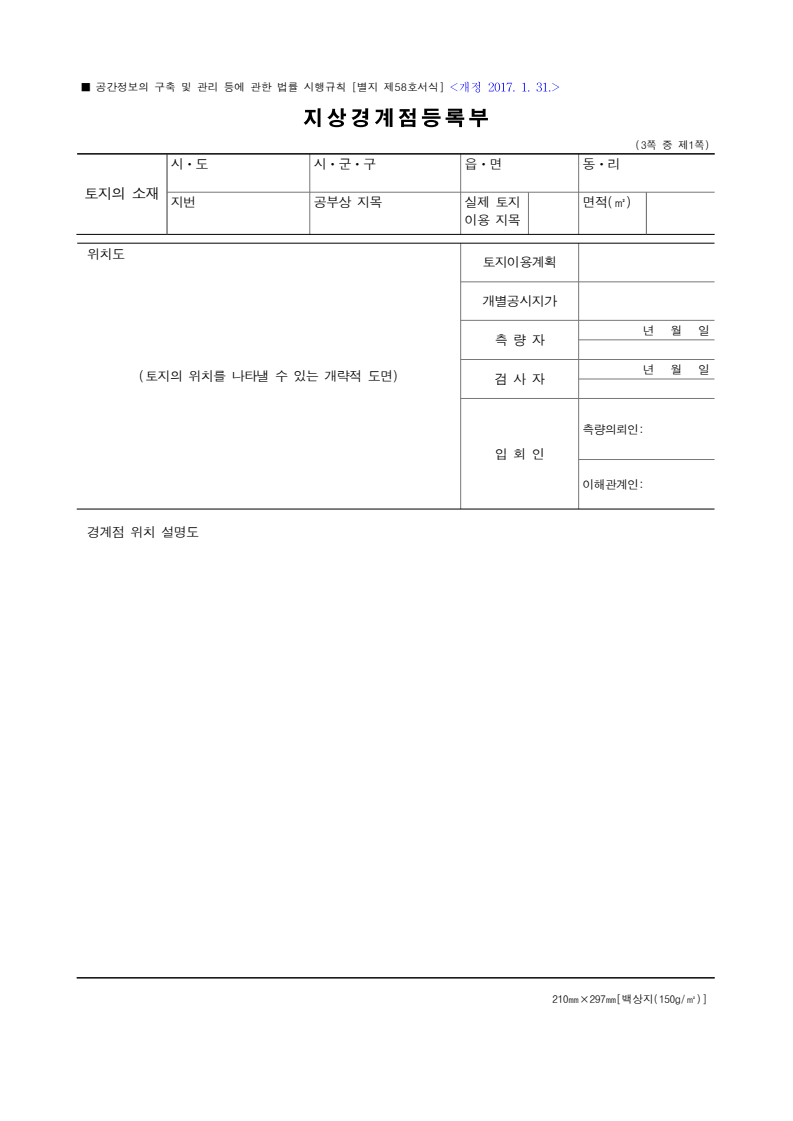 지상경계점등록부의 등록사항